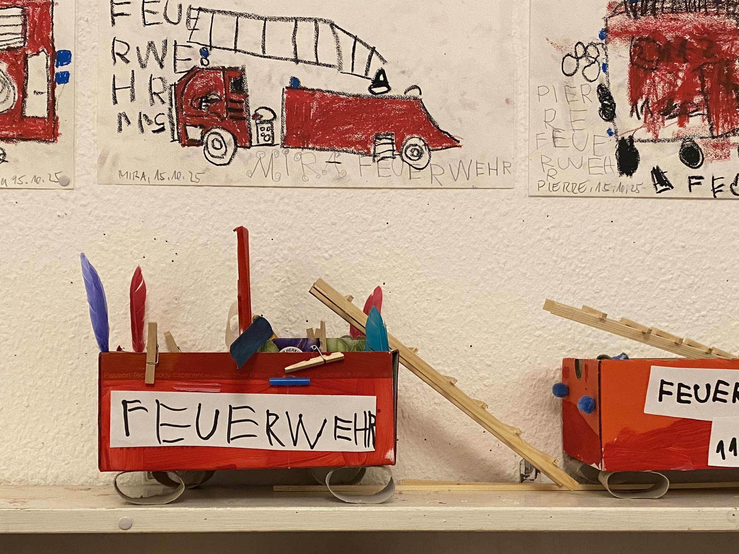 Das pädag.Team nimmt Themen der Kinder auf und bringt auch selbst Ideen für Projekte mit. Projekte sind ganzheitlich auf vielen Gebieten und bieten Kindern unterschiedliche Möglichkeiten mitzumachen. In Projekten wird das Thema anschaulich vorbereitet. Exkursionen zur Feuerwache, in Museen, in die Natur gehören dazu. In der Werkstatt werden Modelle gebaut. Aus einer großen Auswahl von unfertigem Material (Holzreste, Rollen, Folien, Luftballons, Knöpfen, Verpackungsmaterial….) entstehen Feuerwehren, Planeten, Raumschiffe, Schiffe, Häuser…). In der Werkstatt wird gesägt und gehämmert, geschnitten…
